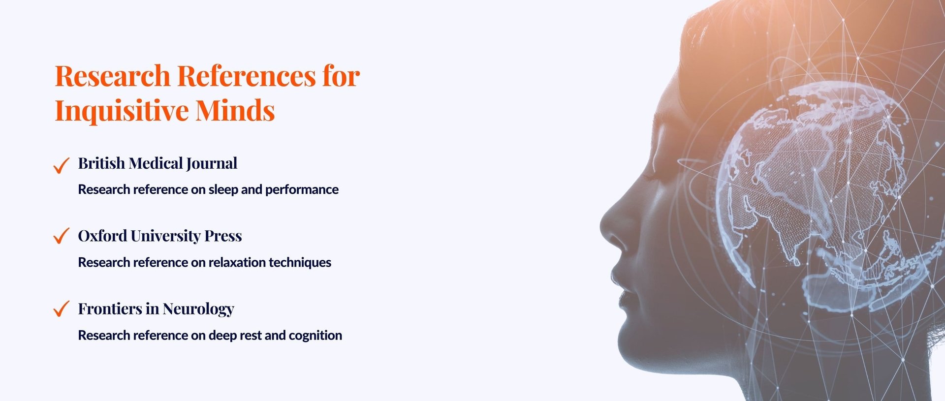 Based on the art and science of relaxation, the program integrates evidence-based strategies, bio-hacking techniques, and non-sleep deep rest practices to maximize the benefits of quality sleep.